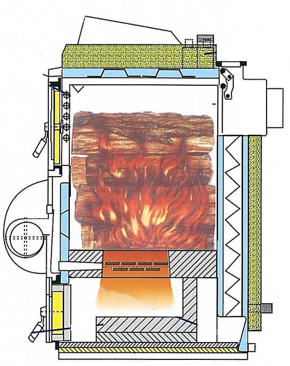 - Kotle jsou konstruovány pro spalování na principu generátorového zplynování dřeva a následného spalování dřevoplynu za vysokých teplot. Hoření dřevoplynu je podporováno ventilátorem, dodávané množství vzduchu je plynule regulovatelné v požadovaném rozsahu výkonu kotle. Vysoké teploty 900 – 1 000 °C je dosahováno přidáním sekundárního vzduchu do proudu hořícího plynu proudícího spalovací tryskou. Při tak vysoké teplotě shoří i hůře spalitelné složky paliva, čímž je zajištěna vysoká účinnost spalování a nízký obsah škodlivin v kouřových plynech.