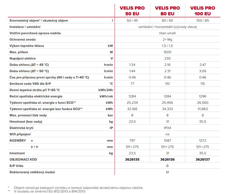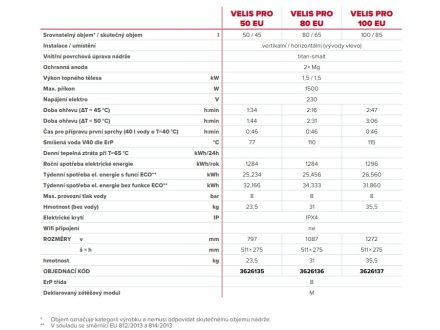 Elektrický ohřívač vody Velis Pro je kompaktní a elegantní. S hloubkou pouhých 27 cm a možností vertikální i horizontální orientace je ideálním řešením i do těch nejstísněnějších prostor. Vysoce kvalitní ochrana vnitřní nádrže smalt-titanem zajistí dlouhodobou životnost, potvrzenou zárukou až 7 let. Díky bílému povrchu zapadne do každého interiéru. Speciální konstrukce ohřívače svými pokročilými funkcemi a vnitřním uspořádáním dokáže nahradit běžné ohřívače s větším objemem.