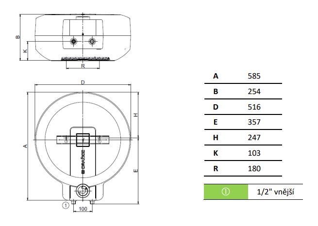 - průměr ohřívače: 516 mm