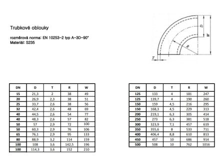Potrubní tvarovka z uhlíkaté oceli pro spojování přivařeným tupým svárem. Používá se pro přepravu tekutin a plynů, užitkové vody, vzduchu aj.