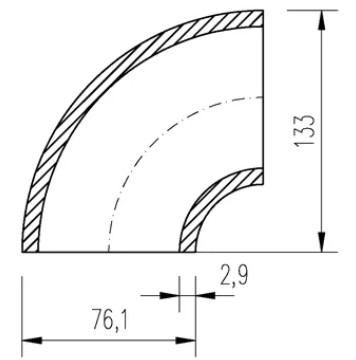 FE koleno varné K3, 90° DN65 - 76,1 x 2,9 mm