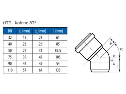 HTB Koleno odpadní 90°, jmenovitá světlost DN 40