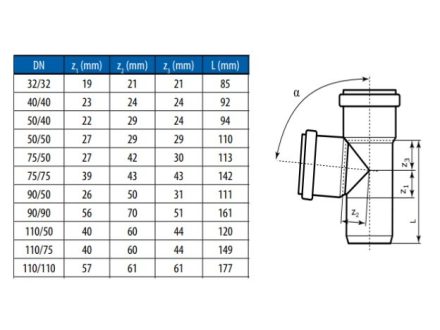 HTEA T-kus (odbočka) 90° odpadní bez náběhu, jmenovitá světlost DN 110/110