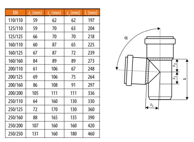KGEA T-kus pro kanalizační systém z PVC SN 4 a SN 8, jmenovitá světlost DN 250/250, úhel 90°