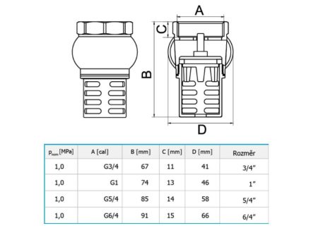NOVASERVIS Mosazný sací koš se zpětnou klapkou 1"